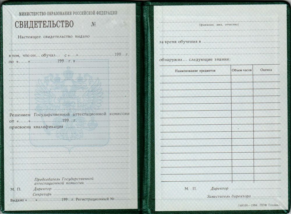 Свидетельство о повышении квалификации до 1995