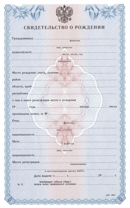 Свидетельство о рождении 1993-1997